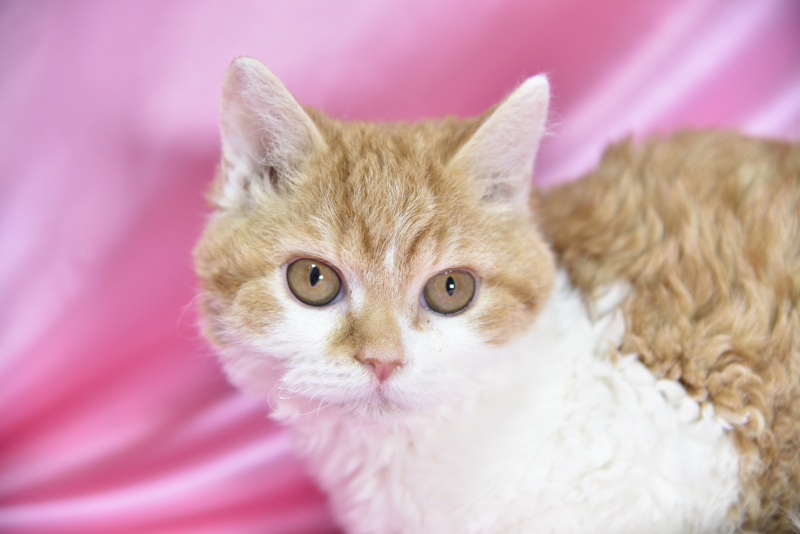 かわいらしいお顔の愛されキャラ。やさしい色合いの被毛は、緩めのカールヘアです。